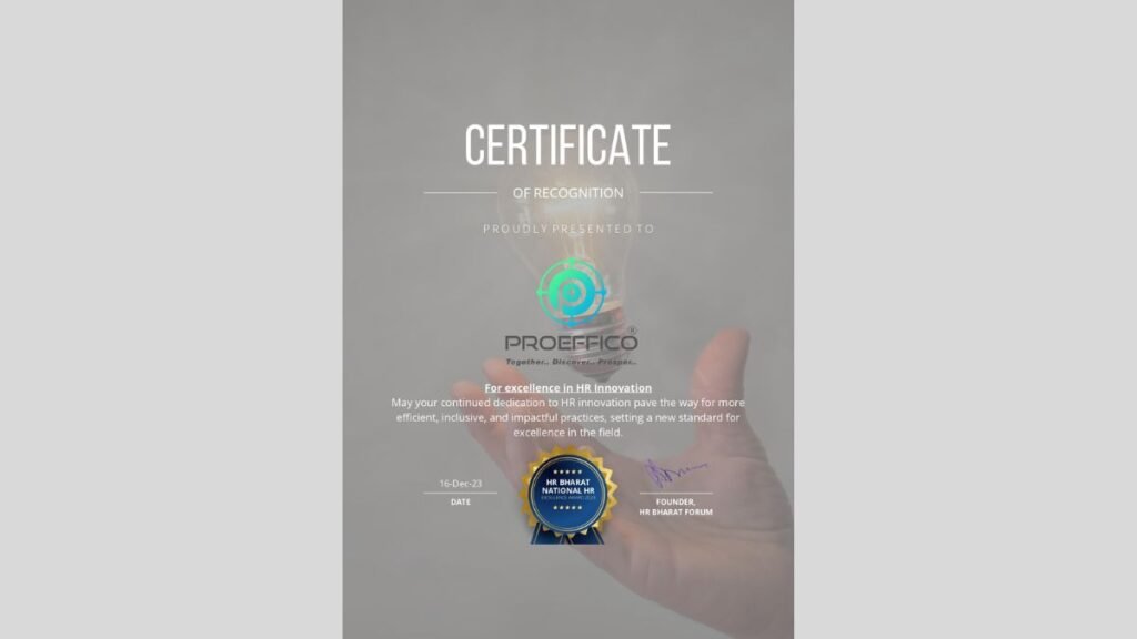 On December 16, 2023, Proeffico, a trailblazer in artificial intelligence product development, received accolades at the HR Bharat National HR Conference 2023 hosted at Manav Rachna University in Faridabad. The event garnered support from HR industry veterans who graced the event and provided valuable insights from their experience. Mr. Samar Mahapatra, the founder of HR Bharat elaborated on the myriad achievements and future objectives of HR India.