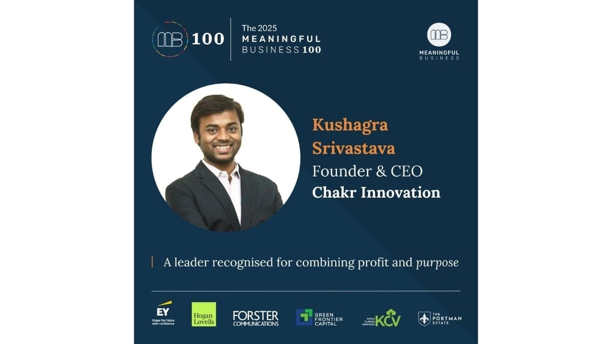 Commenting on the recognition, Kushagra Srivastava, Founder & CEO, Chakr Innovation, said: “It’s an honour to be recognised as part of the Meaningful Business 100 global community. At Chakr Innovation, we are driven by the belief that clean air is a basic right, not a privilege. Our mission has been to build technologies that make sustainable living achievable at scale, starting with tackling emissions at their source. This recognition is a reflection of our team’s commitment and the trust of all our partners who share our vision of a cleaner, healthier India.”